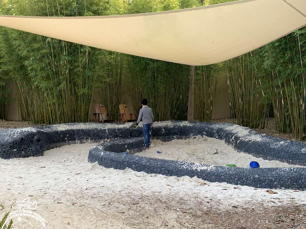 O jardim das crianças é outra parada obrigatória para quem vai com os pequenos. Balanços, labirintos, areia para brincar, sons e cores. E até uma pequena arena de teatro para que possam brincar.