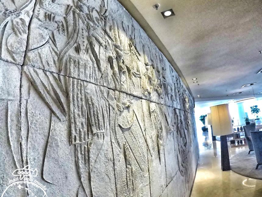 Além do mural, o hóspede pode contemplar o lustre no formato de escamas de peixe, também da década de 1970 de autoria do artista Pedro Corrêa de Araújo Filho. E, para completar o acervo original, a escultura ‘A sereia” de Alfredo Ceschiatti.