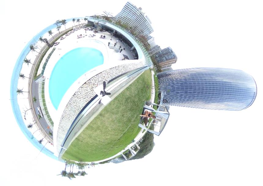 São 413 quartos distribuídos em um prédio cilíndrico todo de vidro de 33 andares com visão panorâmica. A intenção modernista de Niemeyer era que todos os quartos tivessem vista, seja para a rica paisagem natural das praia, para a cidade, a montanha ou a rocinha.