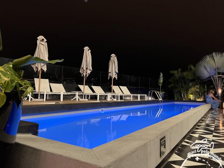O Pullman Miraflores tem uma bela piscina no terraço. Mas o melhor do local é a vista e o Ambra bar, que fica lotado todas as noites.