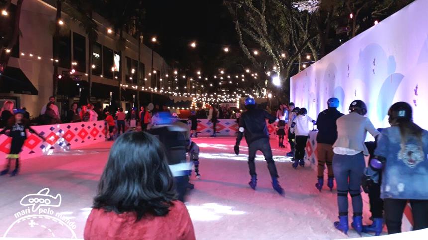 Fomos ontem e aproveitamos para testar a pista de patinação! O Ice Village é um espaço para a família, com comidinhas, música, decoração e pista de patinação no gelo de 160m2 com capacidade para 50 pessoas.
