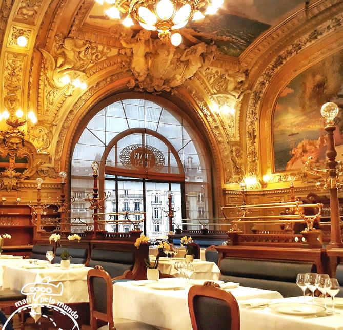 Quando estiver na Gare de Lyon em Paris, olhe para trás e para cima. Vai ver uma escadaria que termina em um restaurante que é quase um palácio, o restaurante Le Train Bleu, simplesmente belíssimo.