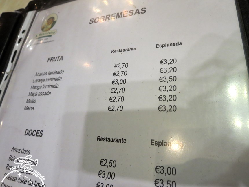 No menu há os cafés tradicionais, as tostas, torradas, pastéis de nata, doces, drinks e sucos. Há muita variedade.