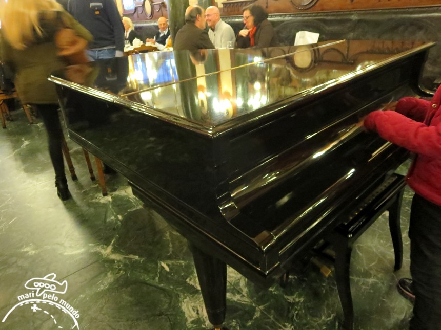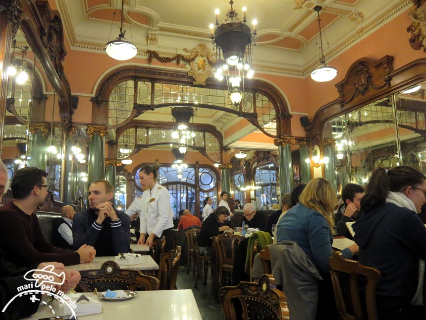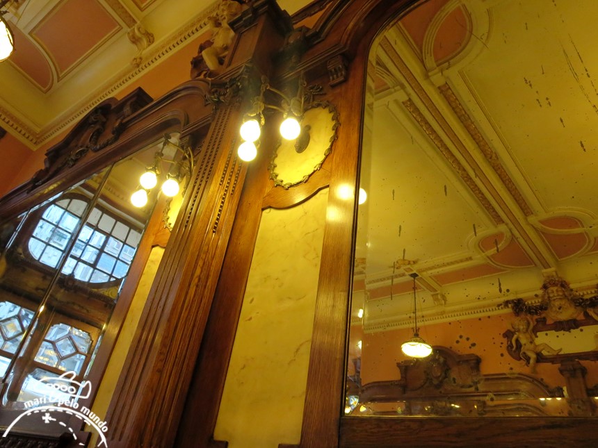 Dizem que o Majestic conta a história do Porto. O Porto da “Bélle Époque”, dos escritores e dos artistas. Com seus bancos aveludados e das madeiras envernizadas,tetos de gesso decorado, espelharia em cristal flamengo, mármore e metal, era o lugar mais chique do Porto. Continua carregando esta fama e por isso, um café no Majestic vale a pena, mesmo que seja o café mais caro do Porto (mas não se assuste.. um café com leite custa em torno de 4 euros, xícara grande, preço mais do que justo para o luxo do lugar)