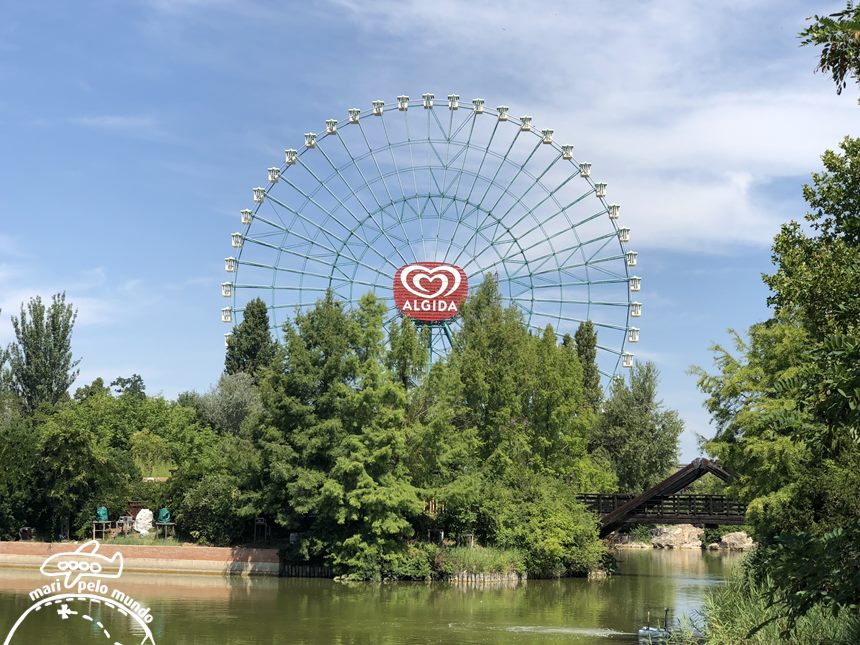 A segunda roda gigante mais alta da Europa tem uma vista privilegiada de todo o parque e da região, com o mar adriático ao fundo.
