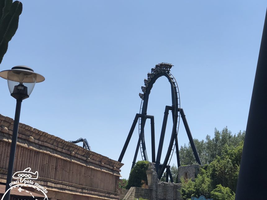 É a primeira montanha russa invertida da Europa. Aquela que você fica com os pés soltos, com a sensação de que vai sair voando!