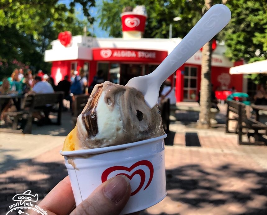 Como em qualquer parque de diversões, Mirabilândia também tem os restaurantes de fast food para um lanche. Mas aqui é fácil achar um pratinho de pasta, afinal você está na Itália.