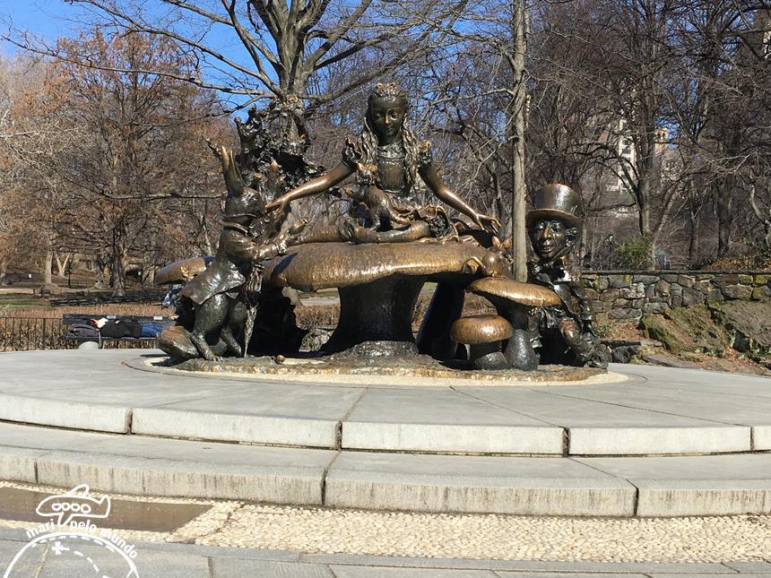 A enorme estátua da Alice sentada num gigantesco cogumelo cercada pelos outros personagens da fábula é um local para adultos e crianças. É um dos lugares que mais gosto de visitar no Central Park para simplesmente apreciar!