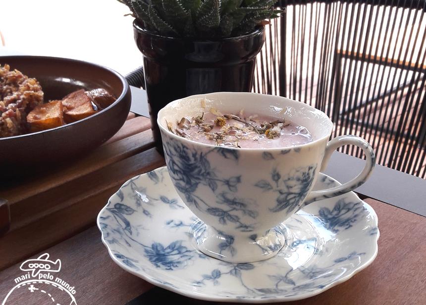 Aceita um chá? Experimente o Cup of Tea. Nos surpreendemos com o delicioso Cup of Tea, um drink com gin Tanqueray, redução de amoras, orange bitters e uma espuma de camomila com geleia de Cabernet. E vem na xícara como na foto abaixo!!