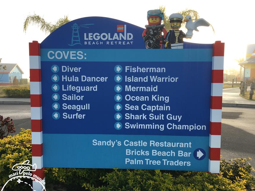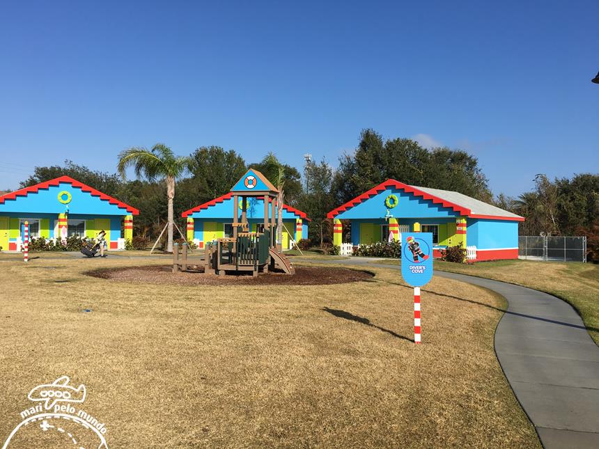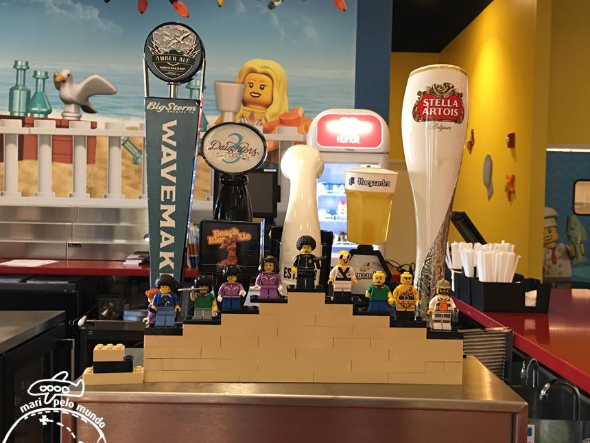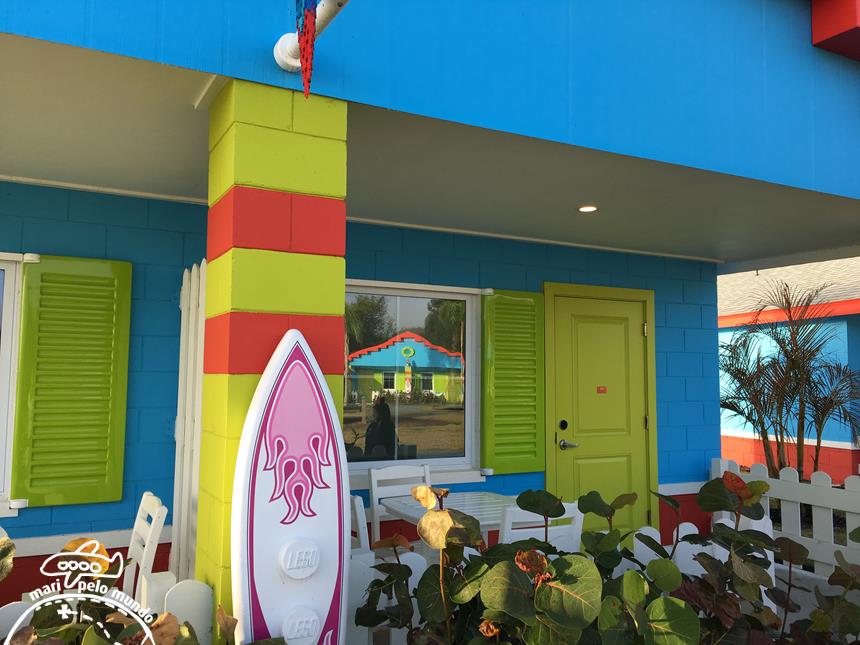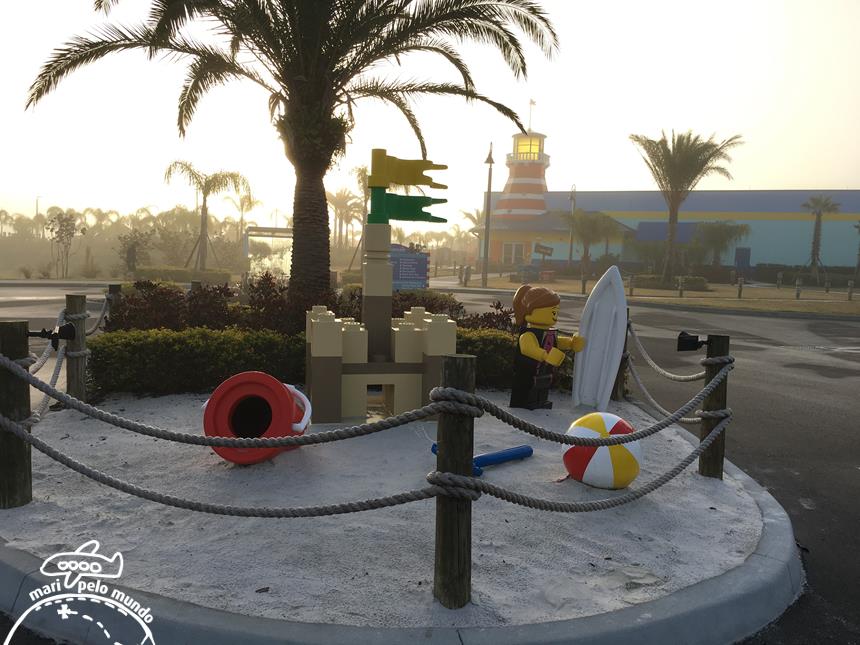 O Legoland Beach Retreat é todo decorado com tema de praia com as figuras e esculturas de lego que são a marca registrada do parque.