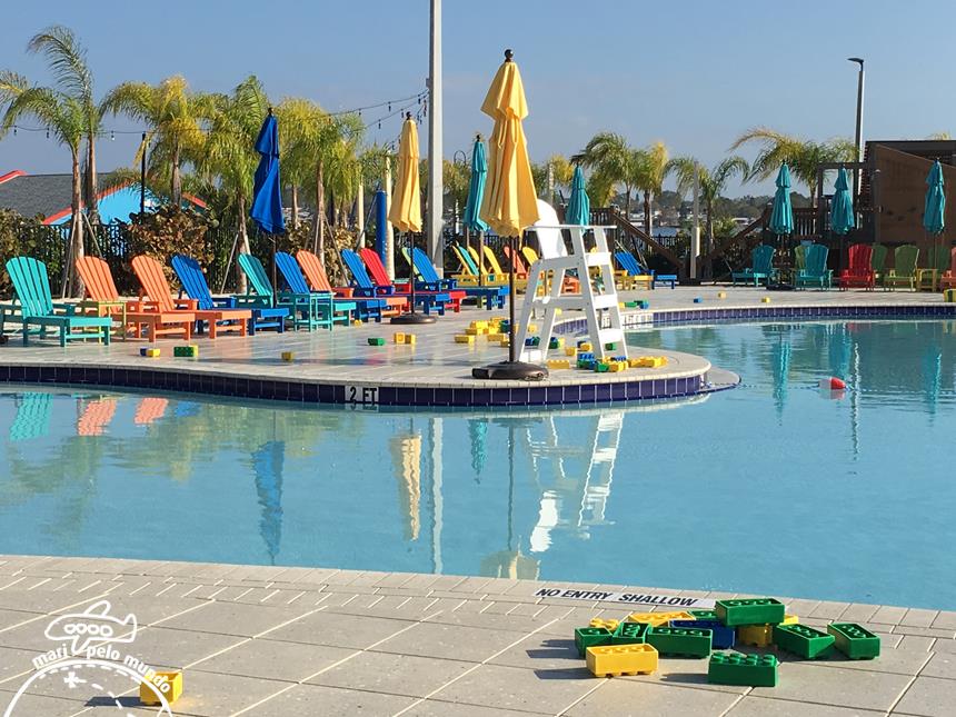 A piscina do Beach Retreat é mais uma atração irresistível do local. Com as peças flutuantes de Lego para brincar o difícil é convencer a criançada a ir embora!