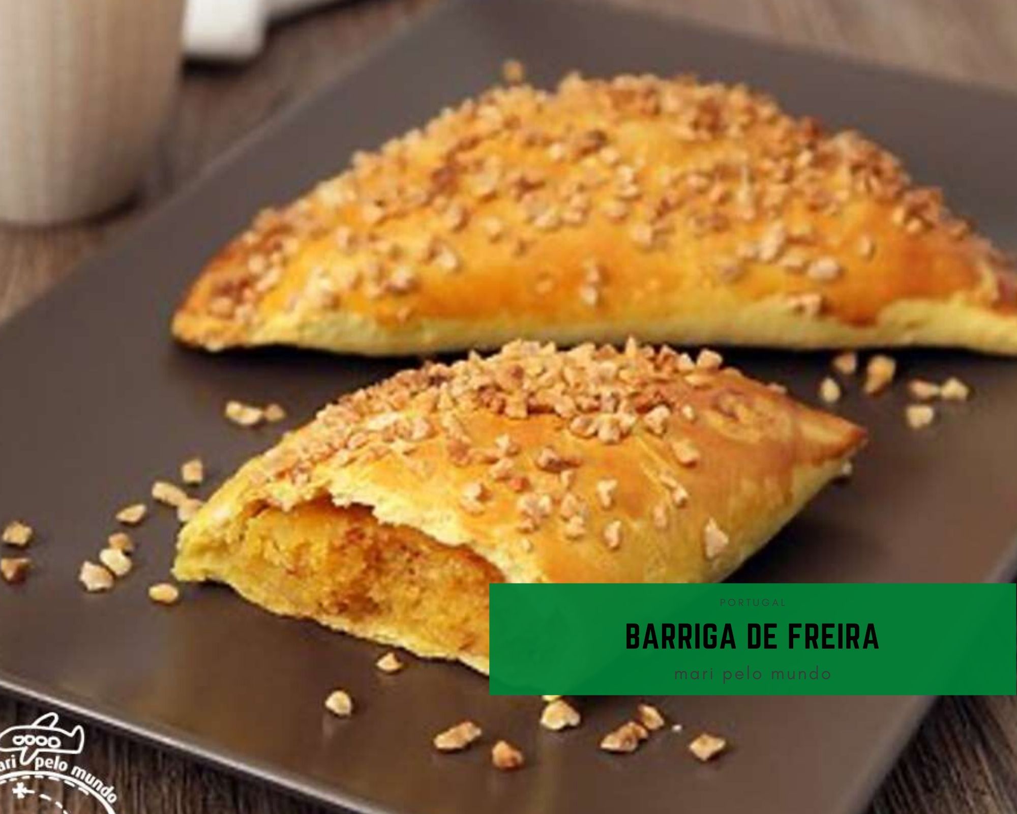 Barriga de freira, também da região de Coimbra, esse doce com nome curioso é parecido com o pastel de Santa Clara, mas tem amêndoas na parte de fora da massa.