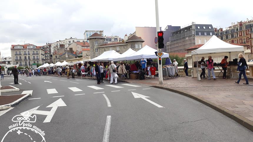 Há uma feira de usados aos finais de semana.