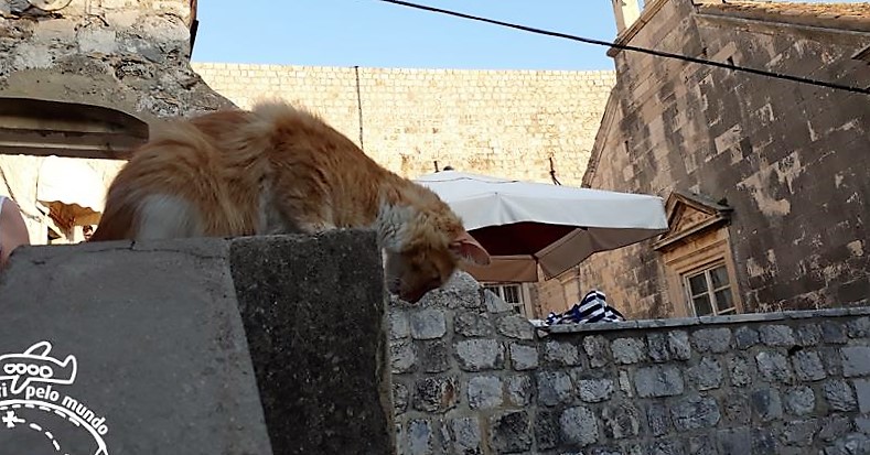 São muitos e são super fotos. Alguns já fazem pose para a foto. Minha filha adora, e fomos de gato em gato caminhando pela cidade. Este estava na muralha também.