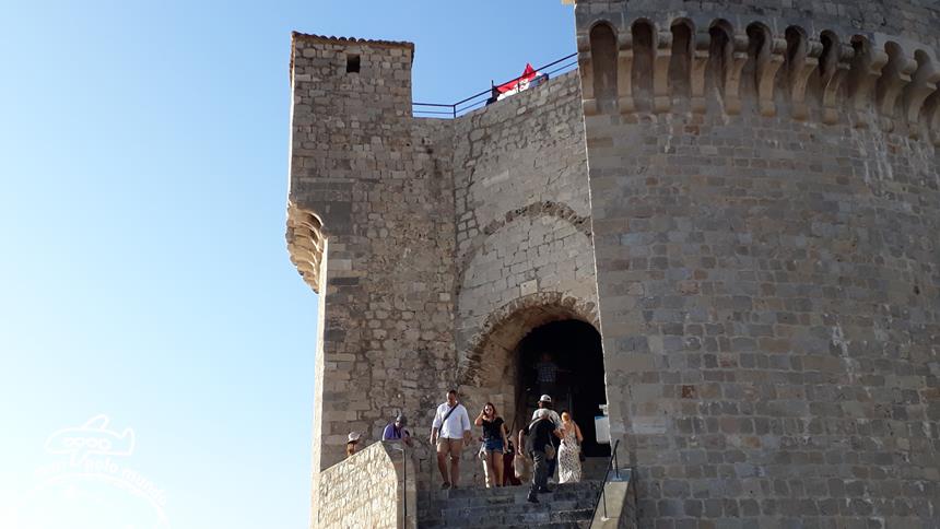 O ponto mais alto da muralha aparentemente é esta torre. Aqui todos param para fazer as fotos. Tem-se uma vista belíssima da cidade e do Adriático.