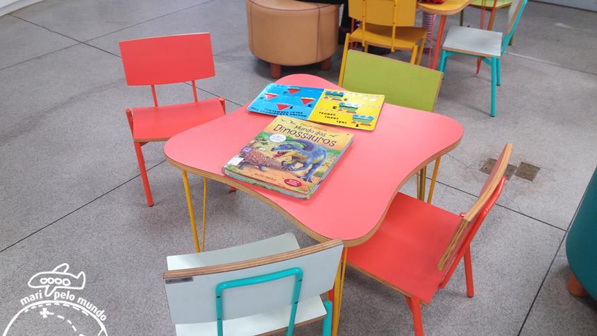A biblioteca tem um espaço central lindo; sala de jogos eletrônicos; ludoteca; computadores com acesso à internet e bastante lugar para sentar.