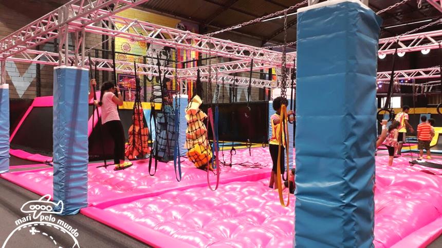 Há vários espaços com atividades diferentes. Os balanços, as paredes de escalar, os trampolins e a piscina de espuma. Há espaço para comemoração de aniversário, cobrado a parte e requer agendamento.