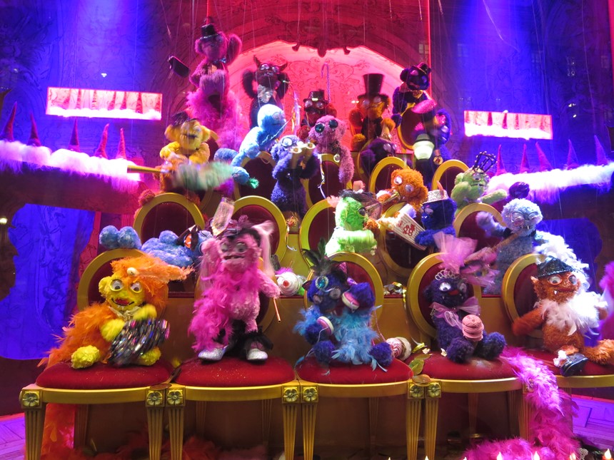 As crianças amam as vitrines da Galerie Lafayette. Há um patamarzinho especial para os pequenos conseguirem enxergar. Vá na primeira quinzena de dezembro que é mais tranquilo. Quando começam as férias dos parisienses, ver as vitrines pode ser um programa bastante concorrido. São várias vitrines. Na foto temos apenas uma delas. A maioria é animada. Veja o vídeo.