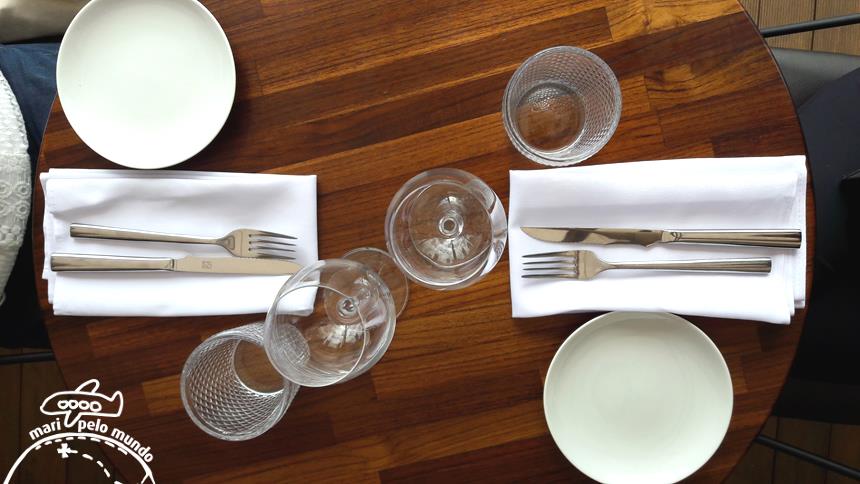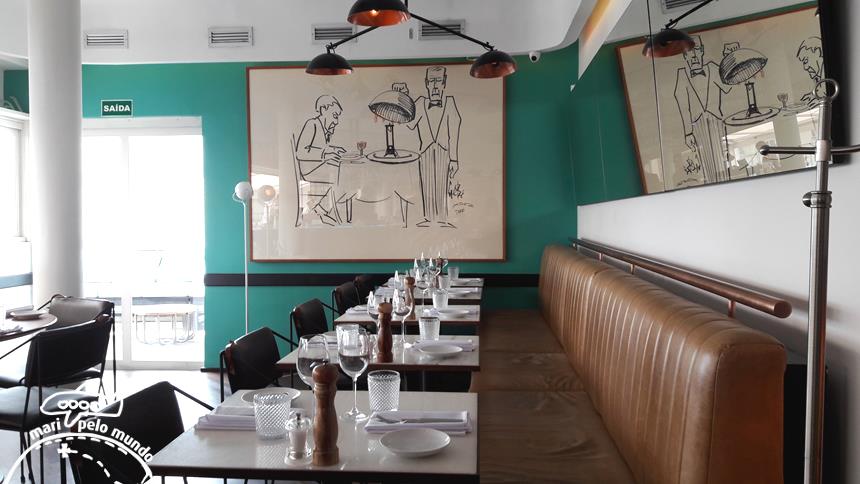 O restaurante é moderno. Não há toalhas em todas as mesas. Ambiente perfeito para almoço, jantar, café ou drink.