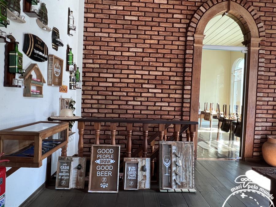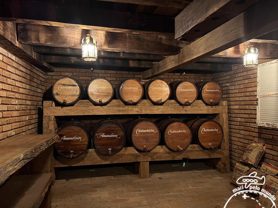 Ali funciona a loja com artesanato local, lembranças, objetos de decoração, além da cachaça produzida na região e envelhecida em barris de madeira ali mesmo, na adega! O porão do casarão armazena os barris de carvalho, castanheira, amendoim ou umburana que envelhecem a cachaça por 3 ou 5 anos.