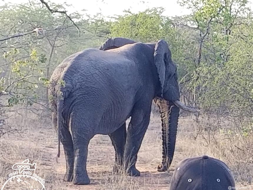 Ficamos 2 dias, tempo suficiente para fazer 4 safáris. Numa das noites quando saiamos do quarto para jantar, encontramos um elefante!