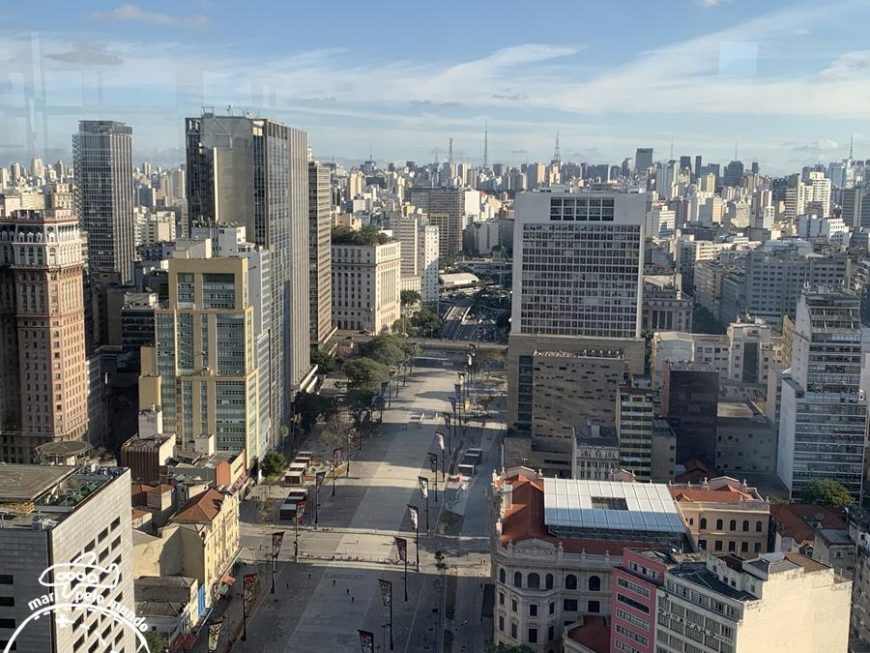 A vista do Deck Sul foi a nossa preferida (entramos na fila para fotos várias vezes!). Dali o grande destaque é o prédio do Farol Santander – também conhecido ainda como Banespão, com a bandeira de São Paulo tremulando ao vento.
