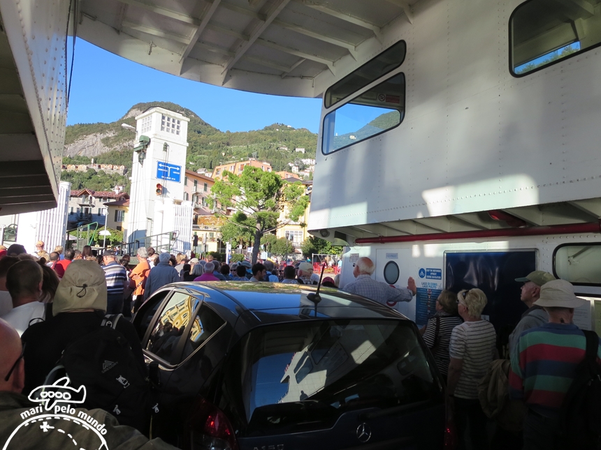 Uma balsa (Imbarcadero) liga Varenna a Bellagio, Cadenabbia e Menaggio. É possível ir e voltar na mesma tarde. Há vários horários mas não erre nem o horário nem a balsa pois elas fazem trajetos diferentes. Metade vai sentado, metade vai de pé. Alguns carros, motos e bicicletas. Como o trajeto dura 20 minutos, é tranquilo. Venta bastante, então proteja-se. A vista é esplendida.