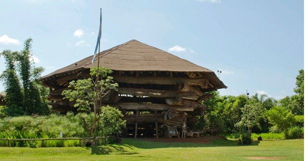 Com 17 metros de altura e 500.000 kgs, o prédio reproduz em grande escala uma armadilha indígena tradicional conhecida como “arapuca”. Site oficial: http://www.aripuca.com.ar/